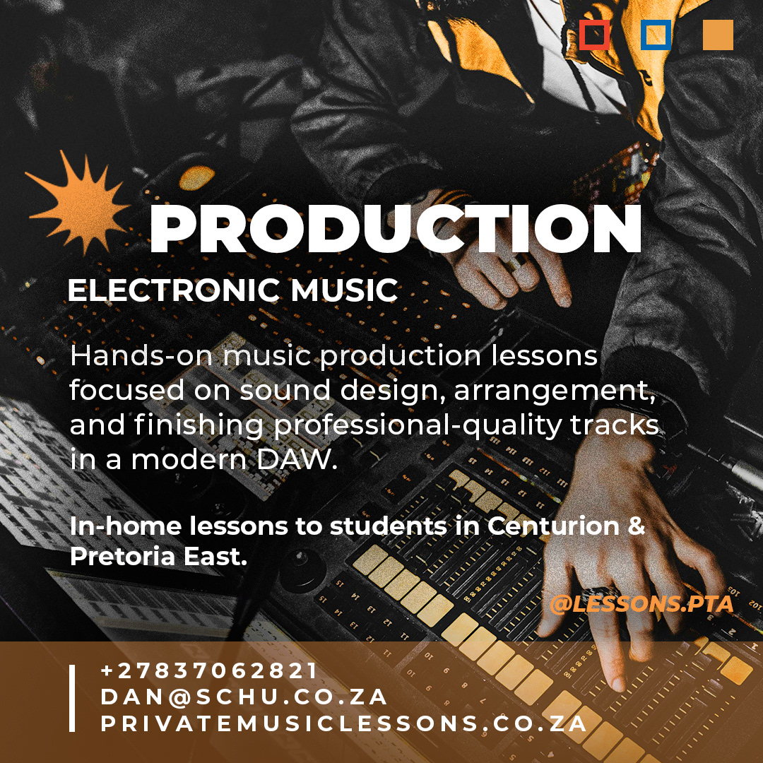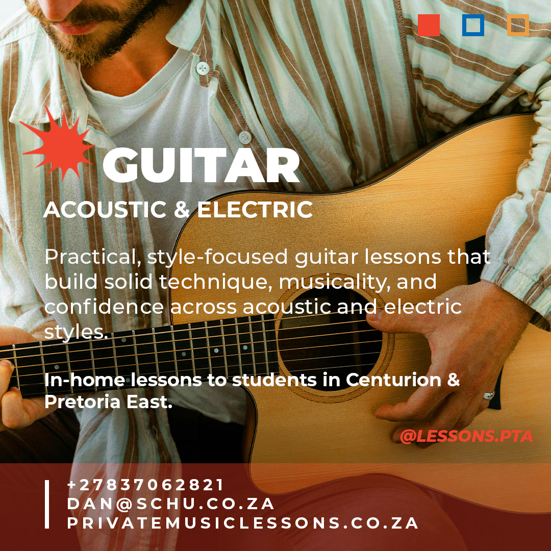 Personalised in-home music lessons to students based in Centurion and Pretoria East. We provide guitar, piano, music theory and music production lessons - suitable for beginners through to more advanced students. Lessons are tailored to each student's age and skill level and are conducted in the comfort of the student's home.